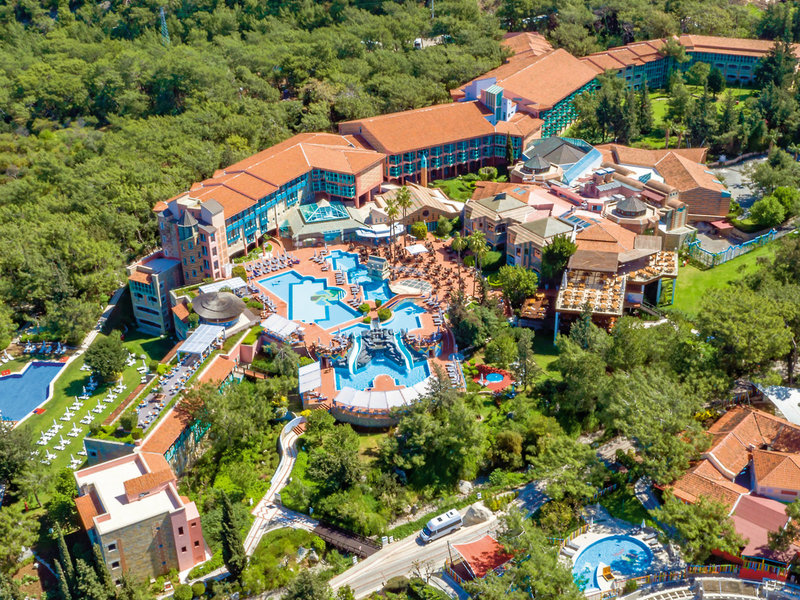 Poloha a okolie Hotel je obklopený borovicovými lesmi na vlastnej hotelovej lagúne s cca 650 m dlhou kamienkovo-piesočnatou plážou. Do mesta "Olu Deniz" so známou plážou je to cca 3 km a do Fethiye cca 15 km. Celková plocha rezortu je 370 000 m² a je rozdelená na „Liberty Hotels Lykia Adult Only“ (87 500 m²) a „Liberty Hotels Lykia Family“ (282 500 m²). Hostia "Liberty Hotel Lykia Adult Only" môžu využívať všetky zariadenia celého rezortu.