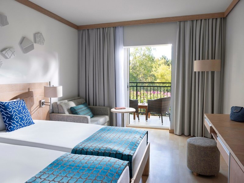 - Standard Room in Mainbuilding (DZX1), Doppelzimmer, Nichtraucherzimmer, im Hauptgebäude, Gartenblick, ca. 30 m², Gesamtanzahl der Räume in diesem Zimmertyp: 1, Aufteilung wie folgt: kombiniertes Wohn-/Schlafzimmer, 2 Einzelbetten (90x200cm), Babybett: ohne Gebühr, Reservierung notwendig, Klimaanlage: ohne Gebühr, individuell regelbar, Fußboden: Fliesenboden, Laminat, Safe: ohne Gebühr, Kaffee-/Teezubereiter, Telefon, Internet: WLAN/WiFi: ohne Gebühr, Fernseher: Flatscreen, Sat-TV, Reinigungsservice: täglich, Dusche, WC, Föhn, Kosmetikspiegel, Balkon oder Terrasse: mit Sitzgelegenheit