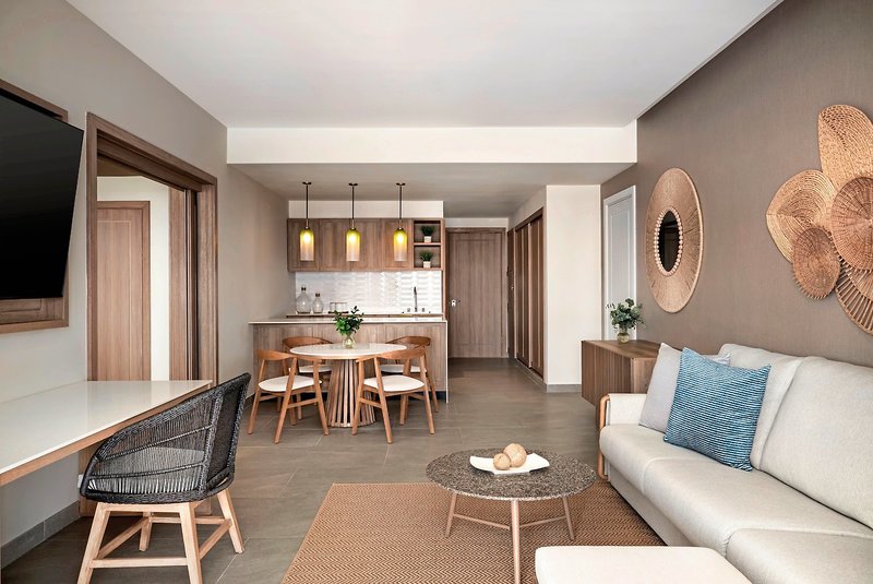 - 121-150 qm, Suite, Meerseite, Meerblick (zum Teil), 1 separates Schlafzimmer, kombinierter Wohn-/Essraum, Couch, Doppelbett (Kingsize), Badewanne, Regendusche, WC, Bademantel, Badeslipper, Haartrockner, Klimaanlage, Ventilator, Minibar, Safe, TV, Essecke, Kaffee/Tee, Terrasse (möbliert), direkter Poolzugang, Gemeinschaftspool, weitere Preferred Club Leistungen