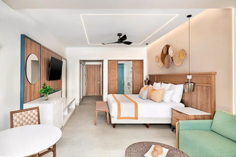 - 61-70 qm, Juniorsuite, Meerseite, Meerblick (zum Teil), Doppelbetten (1 Kingsize oder 2 Doppelbetten), Dusche, WC, Bademantel, Badeslipper, Haartrockner, Klimaanlage, Ventilator, Minibar, Safe, TV, Kaffee/Tee, Terrasse (möbliert), direkter Poolzugang, Gemeinschaftspool, weitere Preferred Club Leistungen