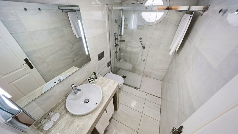 - 21-25 m², Dvojlôžková izba, Hlavná budova, Poschodie, 5., 6., 7. poschodie, Výhľad na more, Písací stôl, Jednolôžko, Sprcha alebo vaňa, WC, Župan (za poplatok), Fén, Kozmetické zrkadlo, Drevená podlaha, Klimatizácia, Kúrenie, Minichladnička, Trezor (za poplatok), TV (satelitná TV), Balkón (zariadený), Vysokokvalitné kúpeľňové vybavenie
