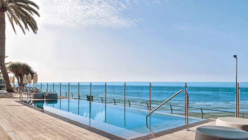Dvojlôžková izba s nekonečným bazénom: Rovnaké vlastnosti ako dvojlôžková izba s výhľadom na more, sú však na prízemí pri malom bazéne s nekonečným okrajom a majú terasu bez výhľadu na more (IPD).
