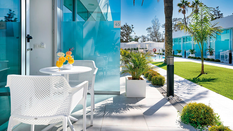 - 26-30 qm, Doppel, Economy, Nebengebäude, Pool-od.Gartenblick, bodengleiche Dusche, WC, Haartrockner, Kosmetikspiegel, Fliesen, Klimaanlage, Minibar kostenpflichtig, Safe, TV (Sat-TV), Terrasse (möbliert)