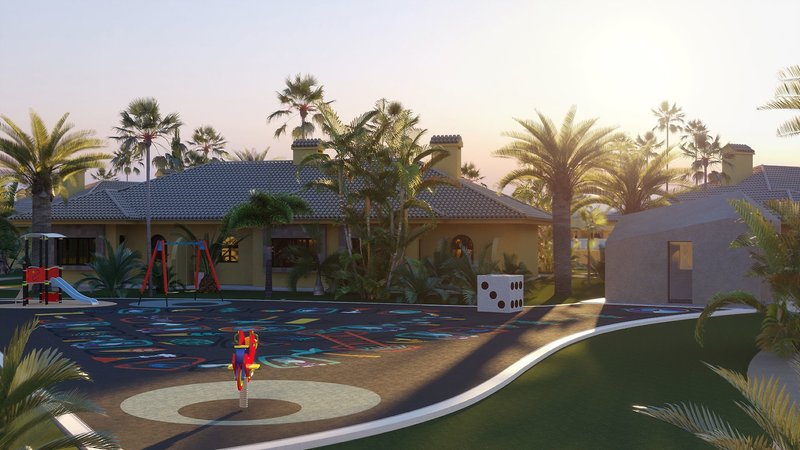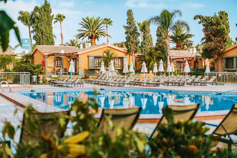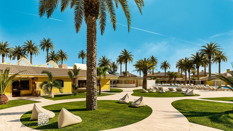Vybavenie: Apartmánový hotel, navrhnutý v štýle bungalovov a čiastočne rozložený na 2 poschodiach, má 233 ubytovacích jednotiek v subtropickej záhrade s rozlohou 75 000 m².