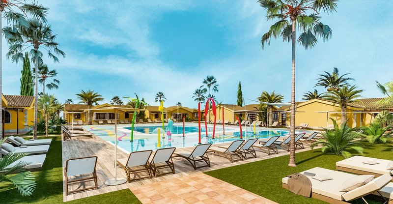 Im Außenbereich befinden sich 3 Swimmingpools sowie 2 Kinderbecken (alle Pools im Winter beheizbar) und ein Splash-Park, Sonnenterrassen mit Liegen und Sonnenschirmen, eine Pool-/Snackbar sowie ein Kinderspielplatz.