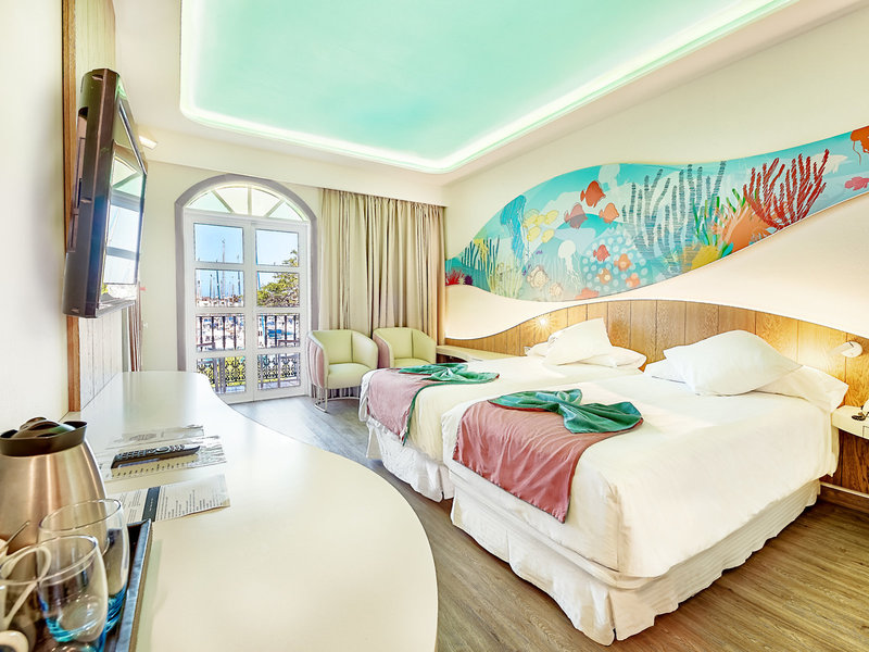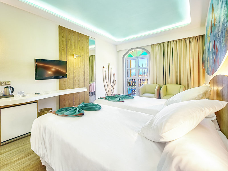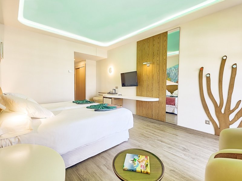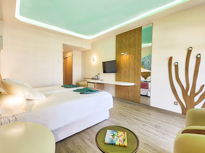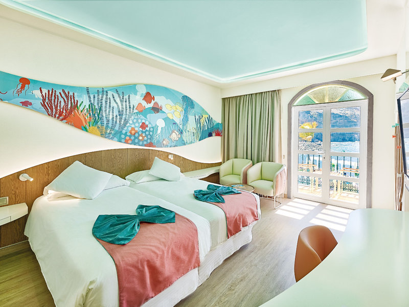 - Suita Junior (JSM1), suita Junior, v hlavnej budove, výhľad na more, cca 27 m², posledná čiastočná rekonštrukcia 2018, celkový počet izieb v tomto type izby: 1, 1 posteľ veľkosti queen (200x200cm), klimatizácia: zdarma za poplatok, individuálne nastaviteľné, podlaha: parkety , Trezor: zadarmo, sedačka, žehlička, žehliaca doska, minibar: za poplatok, telefón, Internet: WLAN/WiFi: zadarmo, TV: plochá obrazovka, v spálni, Nemecké programy, satelitná TV, upratovacia služba: zdarma, sprcha, WC, fén, balkón: s posedením