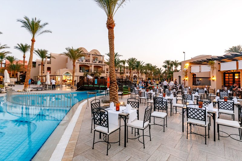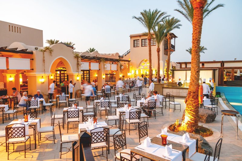 All Inclusive: Hauptrestaurant "Al Masry" Frühstück von 7-10 Uhr, Mittagessen von 12:30-14:30 Uhr und Abendessen von 18:30-21:30 Uhr (Sommer) oder 18-21 Uhr (Winter) in Buffetform. Mittags verschiedene Snacks im "Al Sakkala" von 12-17 Uhr sowie verschiedene Snacks im Restaurant "Aqua" von 12:30-16 Uhr. Wahlweise Abendessen in einem der 7 À-la-carte-Restaurants einmal pro Aufenthalt mit Reservierung. Langschläferfrühstück von 10:30-11:30. Nachmittags von 15-16 Uhr Tee/Kaffee und Gebäck sowie Eiscreme von 10-17 Uhr. Leichte Snacks von 12-17 Uhr. Nationale alkoholische und alkoholfreie Getränke von 10-24 Uhr. "El Obba" (Poolbar) von 10-24 Uhr, "Aqua Beach-Bar" von 10-18 Uhr, "Sultan Bar" (Lobby Bar) von 19-24 Uhr.