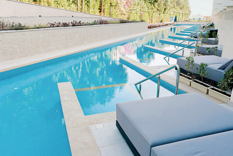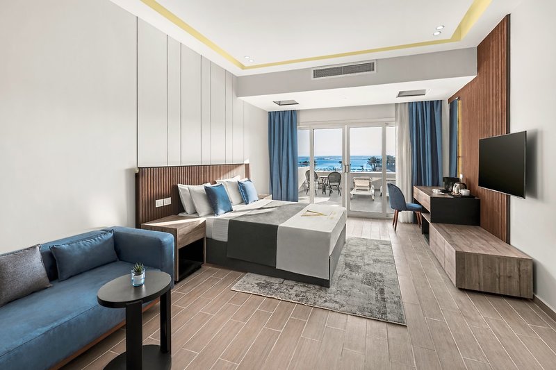 - 41-45 qm, Doppel, Deluxe, Meerseite, Poolblick, Dusche, Haartrockner, Kosmetikspiegel, Klimaanlage, Minibar kostenpflichtig, Safe, TV (Sat-TV), WLAN, Wasserkocher, Kaffee/Tee, Balkon (möbliert), hochwertige Badartikel, Aufdeck-Service, bei Ankunft im Zimmer Wein