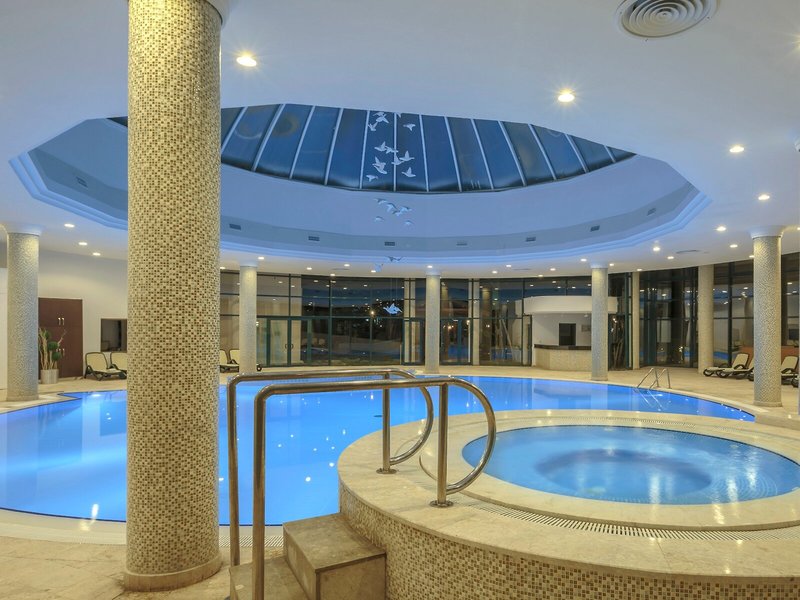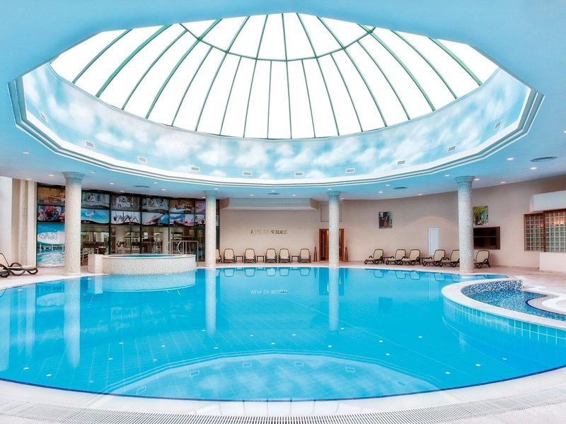 • Bazény: Detský bazén, Aquapark, Vyhrievaný vonkajší bazén, Krytý bazén: zdarma, Vonkajší bazén: zdarma, Slnečníky pri bazéne, Lehátka pri bazéne, Tobogán