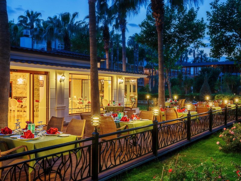 Jedlo a pitie: Možnosti stravovania zahŕňajú kaviareň, bar a lobby bar. Hostia si môžu vybrať z piatich reštaurácií (nefajčiarska, bufetová, à la carte, klimatizovaná a s detskými stoličkami). Osviežujúce nápoje v plážovom bare zabezpečia relaxačný okamih. Hotel ponúka all inclusive a špeciálne all inclusive stravovacie plány. Hostia si môžu vychutnať lahodné raňajky, obed a večeru formou bufetu alebo si objednať menu na večeru. Na požiadanie sú k dispozícii diétne jedlá a detské menu. Detská výživa (bez príplatku) zabezpečuje pohodu najmenších. K dispozícii sú aj špeciálne stravovacie plány a občerstvenie. Alkoholické a nealkoholické nápoje sú zahrnuté v cene ubytovania.