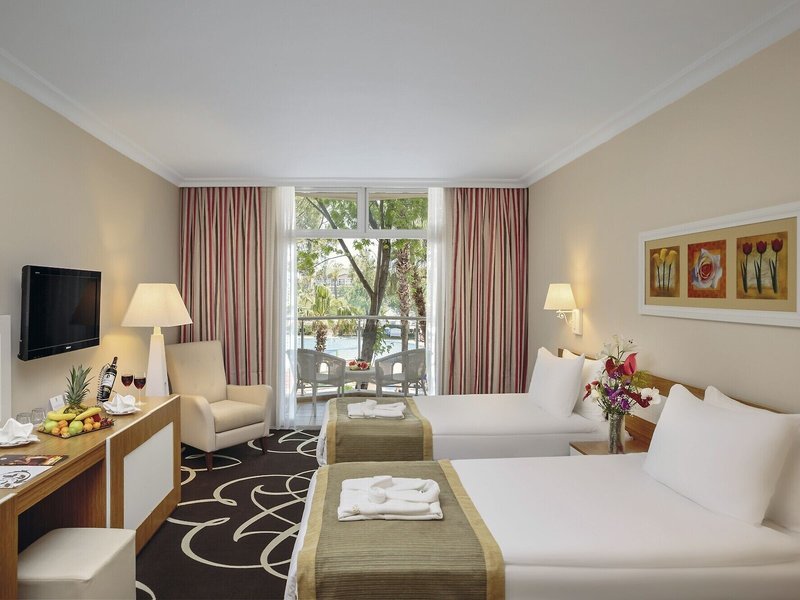Vaše ubytovanie: Klimatizácia zabezpečuje príjemnú vnútornú klímu. Na balkóne alebo súkromnej terase väčšiny izieb si hostia môžu oddýchnuť a vychutnať si výhľad na more. Hostia sa môžu pohodlne vyspať na manželskej posteli. Detské postieľky je možné poskytnúť bezplatne na požiadanie. K dispozícii je aj trezor a minibar. Štandardom je aj príslušenstvo na prípravu čaju/kávy. Pre pohodlie hostí je k dispozícii žehliaca súprava. K vybaveniu patrí telefón, TV so satelitnými/káblovými programami a Wi-Fi. Ponuka vankúšov sľubuje útulnú pohodu. Kúpeľne sú vybavené sprchovacím kútom, vaňou a vírivkou. K dispozícii je sušič vlasov a župany na každodenné použitie. Výber uterákov zaisťuje extra pohodlie v kúpeľniach. K dispozícii je aj 8 izieb s bezbariérovým prístupom pre vozíčkarov. Rezort ponúka 132 rodinných a nefajčiarskych izieb.