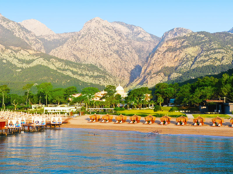 Lage: Direkt am Strand (Sand, Kies) mit Strandbar und Badesteg. Bis nach Kemer ca. 18 km.