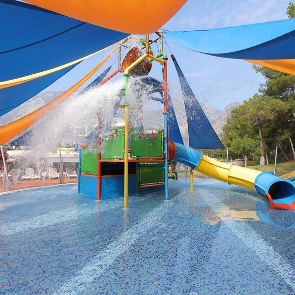 Ausstattung: Hotel der Luxusklasse auf einer Gesamtfläche von ca. 90.000 qm. Große Swimmingpoollandschaft (teilw. in der Vor- und Nachsaison beheizt), Rutschenpool (stdw.), sep. Kinderbecken, Sonnenterrasse, Pool-/Snackbar. Liegen, Auflagen, Schirme, Badetücher an Pool und Strand. Pavillons am Strand gegen Gebühr. Empfangshalle mit Rezeption und Lobbybar (24 Stunden). Hauptrestaurant, 4 À-la-carte-Restaurants (italienisch, Meeresfrüchte, fernöstlich, vegan (ab 01.05.), gegen Gebühr), Patisserie, Café, Irish Pub, Vitaminbar, Geschäfte, Friseur, Diskothek. Landeskategorie: 5 Sterne, 423 Zimmer.