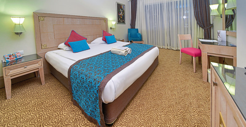 - 26-30 m², dvojlôžková izba, hlavná budova, výhľad na more (bočný), nefajčiarska izba, 1 jednolôžková posteľ, 1 manželská posteľ, 1 kúpeľňa, sprchovací kút, 1 WC, fén, koberec, klimatizácia, centrálne ovládaná, minibar, denne dopĺňaný, trezor, TV (satelitná TV), rýchlovarná kanvica, káva/čaj, balkón