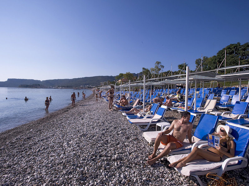 • Pláž: štrková, strmo sa zvažujúca, dĺžka pláže: cca 50 m, mólo, odporúčaná kúpacia obuv, verejná s vlastnou hotelovou časťou, ležadlá: zdarma, slnečníky: zdarma.
