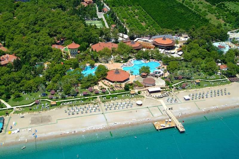 Vybavenie: Hotelový komplex sa nachádza na pozemku s rozlohou 100 000 m² a pozostáva z 30 troj- až štvorposchodových klubových budov s celkovým počtom 551 izieb. Medzi vybavenie hotela patrí priestranná vstupná hala s recepciou, pohodlné posedenie, lobby bar (kde je zahrnuté Wi-Fi), hlavná reštaurácia s terasou, niekoľko à la carte reštaurácií (niektoré sú zahrnuté jednorazovo pri rezervácii na sedem nocí; niektoré à la carte reštaurácie sú spoplatnené) a rôzne bary. K dispozícii je aj nákupná pasáž s rôznymi obchodmi, herné centrum a hobby centrum (obe sú spoplatnené). Medzi ďalšie vybavenie patrí krásny krytý bazén a atraktívne wellness centrum. Ústredným bodom krásne upravenej záhrady, zatienenej početnými borovicami, je rozsiahly bazénový komplex (jeden bazén je vyhrievaný, ak to počasie dovolí, podľa uváženia hotela) so siedmimi sladkovodnými bazénmi, samostatným detským bazénom, aquaparkom s dvoma toboganmi, vodným parkom a snack barom pri bazéne. Slnečné terasy, trávnik, oddychová zóna a štýlové mólo vás pozývajú na opaľovanie a relax. Lehátka, vankúše, slnečníky a plážové osušky sú zahrnuté v cene ubytovania aj na pláži.