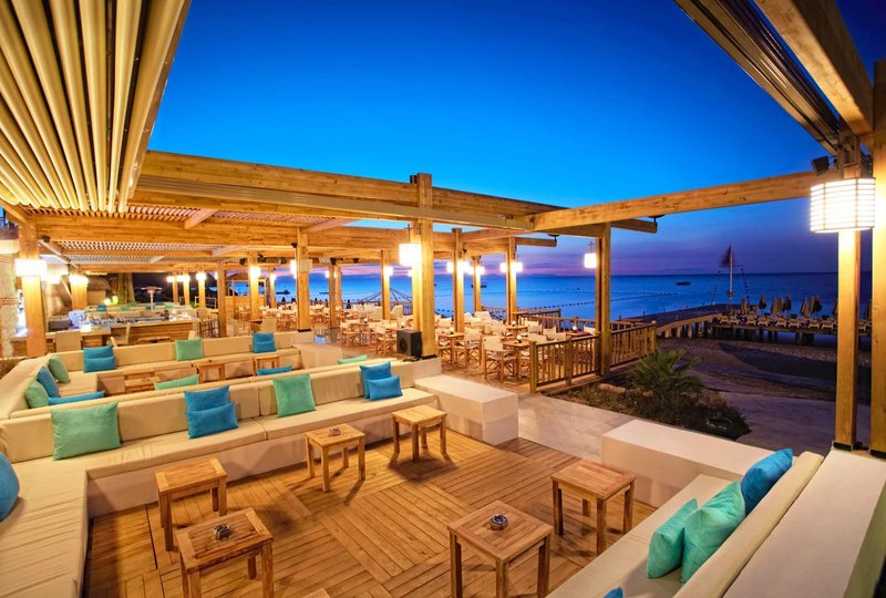 Ausstattung: Die Hotelanlage erstreckt sich auf einem 100.000 m² großen Grundstück und besteht aus 30 drei- bis vier-stöckigen Clubgebäuden mit insgesamt 551 Zimmern. Zu den Annehmlichkeiten des Hotels gehören die großzügig konzipierte Empfangshalle mit Rezeption, gemütlichen Sitzecken, Lobbybar hier ist Wi-Fi inklusive, das Hauptrestaurant mit Terrassenbereich, diverse À-la-carte-Restaurant (einige mit Voranmeldung bei sieben Nächten einmal inklusive, einige À-la-carte-Restaurants sind gegen Gebühr) und verschiedene Bars. Einkaufsarkade mit verschiedenen Geschäften, ein Gamecenter, Hobbycenter ist jeweils gegen Gebühr, das schöne Hallenbad und der ansprechende Wellnessbereich. In der schön angelegten Gartenanlage mit zahlreichen schattenspendenden Pinienbäumen befindet sich als Herzstück die großzügige Swimmingpoollandschaft (ein Swimmingpool ist wetterbedingt und in Ermessen des Hotelier beheizbar) mit sieben Süßwasser-Becken, separatem Kinderbecken und dem Aquapark mit zwei Wasserrutschen sowie ein Splash Park und die Pool-/Snackbar. Die Sonnenterrassen, Liegewiese und der Chill-out-Bereich sowie der schicke Badesteg laden zum Sonnenbaden und Relaxen ein. Liegen, Auflagen, Sonnenschirme und Badetücher sind hier und am Strand inklusive.