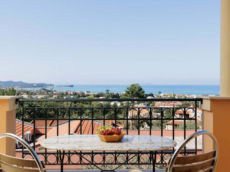 Lage & Umgebung Das Resort befindet sich in der nördlichen Region der Insel Korfu, im malerischen Dorf von Acharavi. Es liegt auf einem steilen Hügel und besteht aus mehreren Gebäuden (alle ohne Lift). Der etwa 8 km lange Strand von Acharavi ist nur ca. 600 m von der Anlage entfernt. Korfu Stadt liegt in ca. 35 km Entfernung.