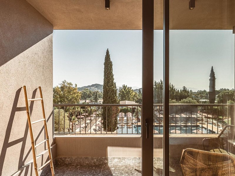 - Dvojlôžková izba s výhľadom do vnútrozemia (DZX1), dvojlôžková izba, nefajčiarska izba, minimálny vek v izbe: 16 rokov, v hlavnej budove, orientovaná na krajinu, výhľad na krajinu, cca 27 m², posledná kompletná rekonštrukcia v roku 2022, celkový počet izieb v tomto type izby: 1, rozloženie nasledovne: 1 spálňa, 2 samostatné lôžka, klimatizácia: zadarmo, individuálne nastaviteľná, studená, teplá, podlaha: dlažba, trezor: zadarmo, príslušenstvo na prípravu kávy/čaju, minibar: za poplatok, telefón, Internet: WLAN/WiFi: zadarmo, TV: s plochou obrazovkou, v spálni, satelitná TV, izbová služba: za poplatok, dažďová sprcha, WC, župan: bez poplatku, papuče: bez za poplatok, fén, kozmetické zrkadlo, balkón alebo terasa s posedením