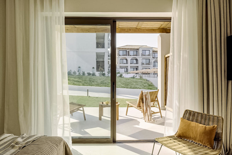 - 31-35 qm, Juniorsuite, Meerblick, kombinierter Wohn-/Schlafraum, Sitzecke, Schreibtisch, Regendusche, Bademantel, Badeslipper, Haartrockner, Klimaanlage, individuell regulierbar, Mini-Kühlschrank, Safe, Bügelbrett, TV (Flachbildschirm, Smart-TV), Kaffeemaschine, Kaffee/Tee, Balkon oder Terrasse (möbliert), Anzahl Zimmer: 19, bodentiefe Fenster