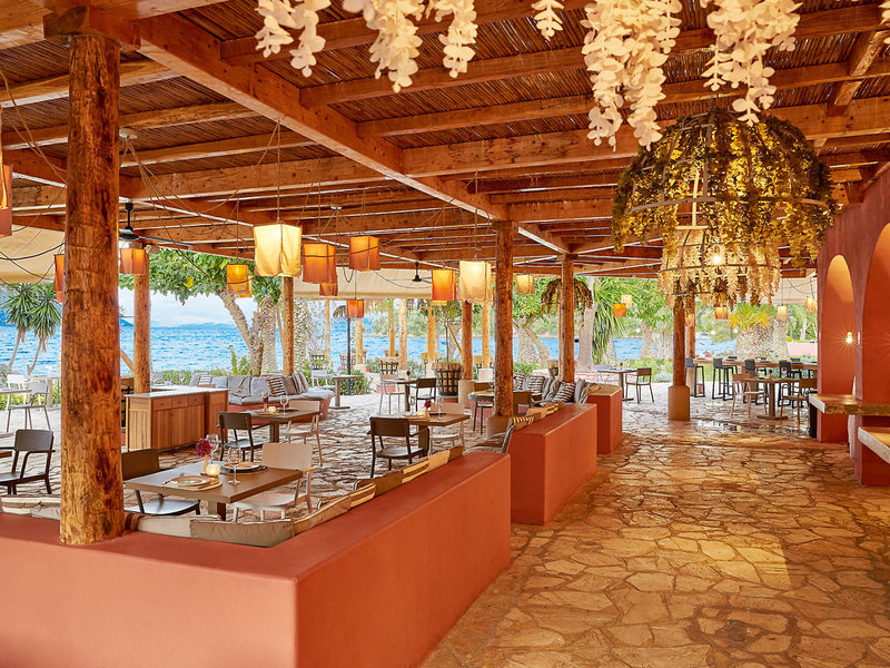 - Špeciálna reštaurácia Tavernaki: Kuchyňa: grécka, stredomorská, bezlepkové jedlá: bez poplatku, vyžiadanie a rezervácia nutná, kombinovanie jedál, vegetariánske jedlá: bez poplatku, vyžiadanie a rezervácia nutná, výber z menu, nutná rezervácia, bez poplatku, sezónne; v závislosti od počasia, 19:00 - 22:00, dve jedlá večer, s terasou, na pláži, vysoká stolička, vhodné oblečenie