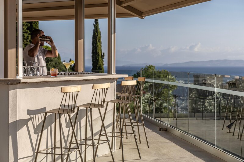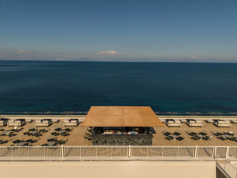 Vybavenie: Tento komfortný hotel s atraktívnym dizajnom, zrekonštruovaný v rokoch 2024/25, ponúka výhľad na Iónske more. Je terasovitého typu a nachádza sa uprostred rozsiahleho vonkajšieho areálu s dvoma bazénmi a detským bazénom. Pri bazéne/pláži sú k dispozícii slnečné terasy s ležadlami a slnečníkmi, bar s občerstvením pri bazéne a plážový bar. K dispozícii je aj štýlová vstupná hala, recepcia, reštaurácia, bar a knižnica. Národná kategória: 5 hviezdičiek, 201 izieb a dva výťahy v hlavnej budove (6 poschodí).