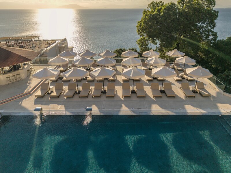 Užite si dovolenku v tomto obľúbenom hoteli na svahu s pôsobivým výhľadom na Iónske more! Urobte z toho nezabudnuteľný zážitok!