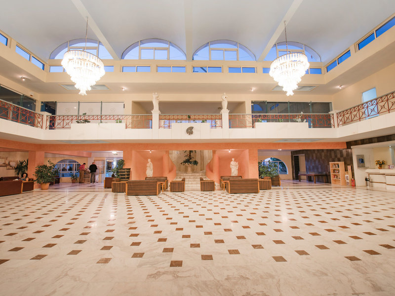 - Hlavná reštaurácia HLAVNÁ REŠTAURÁCIA: Kuchyňa: grécka, medzinárodná, stredomorská, bufet, show cooking, zahrnuté v All Inclusive, denne 7:00 - 10:00, denne 12:30 - 14:30, denne 18:30. - 21:00 :30, klimatizované, s terasou, vysoká stolička, potrebné vhodné oblečenie