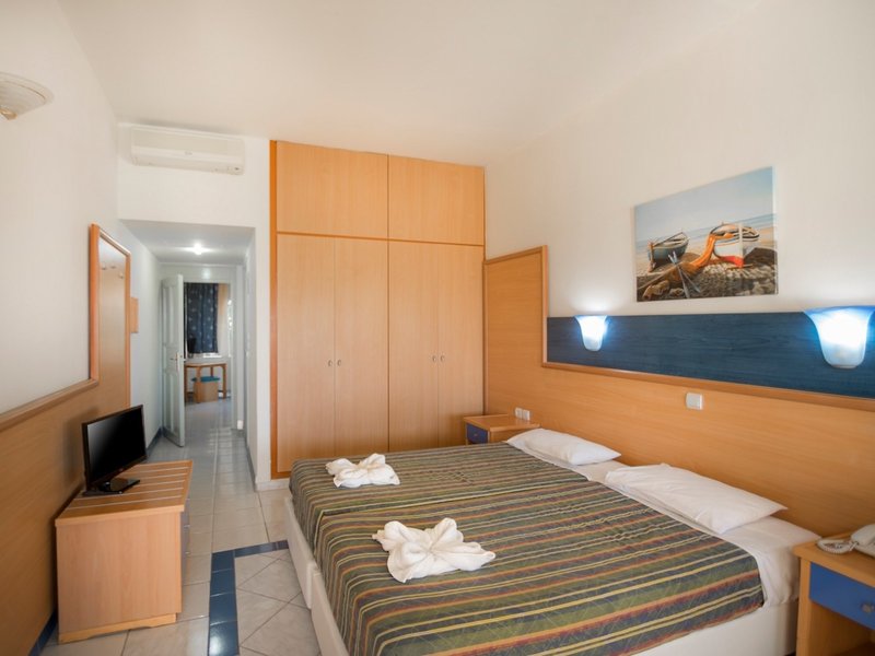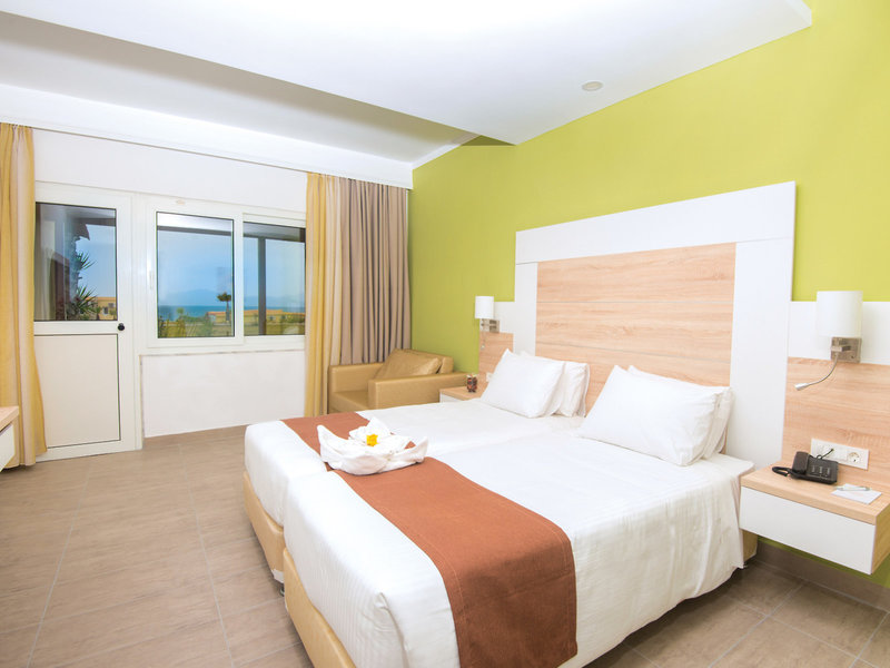 - Dvojlôžková izba s výhľadom na more (DZM1), dvojlôžková izba, záhradná strana, výhľad na more, cca. 17 - 25 m², posledná čiastočná rekonštrukcia v roku 2009, celkový počet izieb v tomto type izby: 1, rozloženie: 1 spálňa, 2 samostatné lôžka, detská postieľka: cca. 6 EUR na deň, klimatizácia: zadarmo, v cene all inclusive, individuálne ovládané, studené, podlaha: dlažba, trezor: zadarmo, v cene all inclusive, chladnička: zadarmo, v cene all inclusive, telefón, TV s plochou obrazovkou, nemecké kanály, satelitná TV, upratovanie: zadarmo, vaňa, WC, sušič vlasov, balkón alebo terasa: s posedením