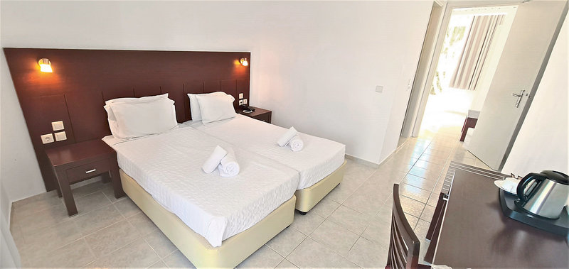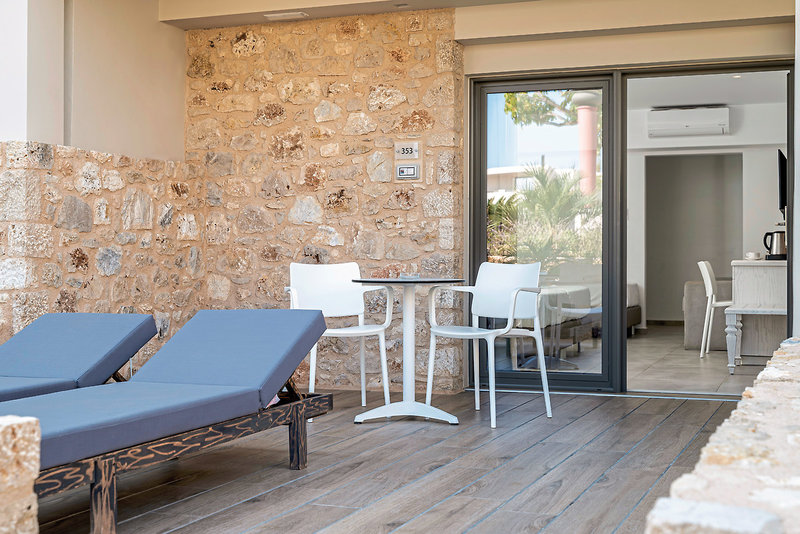 - 26-30 qm, Doppel, Deluxe, Poolblick, Hauptgebäude oder Nebengebäude, renoviert (2022), Twinbett, Sofabett, Dusche, Haartrockner, Klimaanlage, individuell regulierbar, Mini-Kühlschrank, Safe, TV (Sat-TV), WLAN, kostenpflichtig, Kaffee/Tee, Terrasse (möbliert), Anzahl Zimmer: 10
