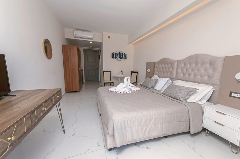 - Apartmán Superior, hlavná budova, 2 samostatné spálne, sprchovací kút, papuče, fén, klimatizácia (za poplatok), trezor (za poplatok), TV (satelitná TV), kuchynský kút, rýchlovarná kanvica, chladnička, balkón alebo terasa (zariadená), víno a voda pri príchode na izbu