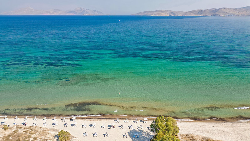 - Sandstrand: flach abfallend, Sonnenschirme (kostenpflichtig), Liegen (kostenpflichtig), sanitäre Anlage (Dusche)