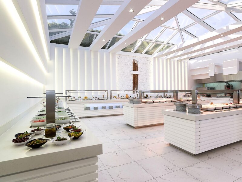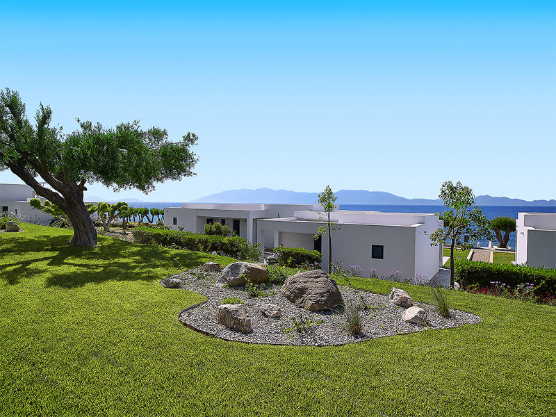 Ausstattung: Terrassenförmig angelegte Hotelanlage, bestehend aus Haupthaus, Nebengebäude und bungalowähnlichen Wohngebäuden. Hübsch angelegte Gartenanlage, 3 Swimmingpools, Jacuzzi, Sonnenterrassen mit tollem Blick aufs Meer, Liegen, Schirme, Badetücher am Pool und Strand. Swim-up-Poolbar. Hell eingerichtete Empfangshalle, Rezeption, WLAN, Lobbybar, "Thalassa"-Lounge und "White"-Lounge (Adults only), 2 Buffetrestaurants, À-la-carte-Restaurant (italienisch), Minimarkt. Fernsehraum, Bibliothek. Wäscheservice (gegen Gebühr). Parkplätze. Landeskategorie: 5 Sterne, 256 Einheiten.