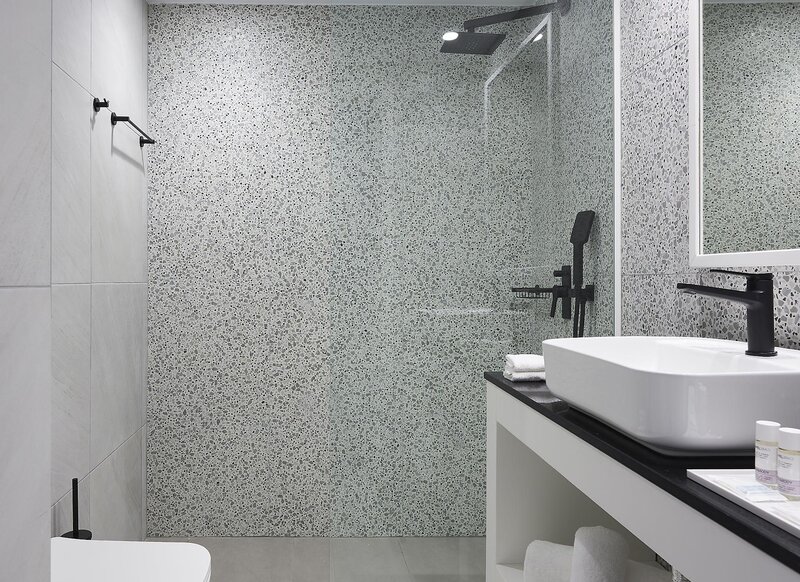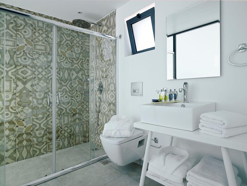Junior Suite (JSM, cca 35 m²), klimatizácia, minibar, espresso kávovar, kávovar/čajník, televízor, telefón, Wi-Fi, trezor. Sprcha, WC, sušič vlasov, župan, papuče. Balkón/terasa, výhľad na more. Max. 3 dospelí.