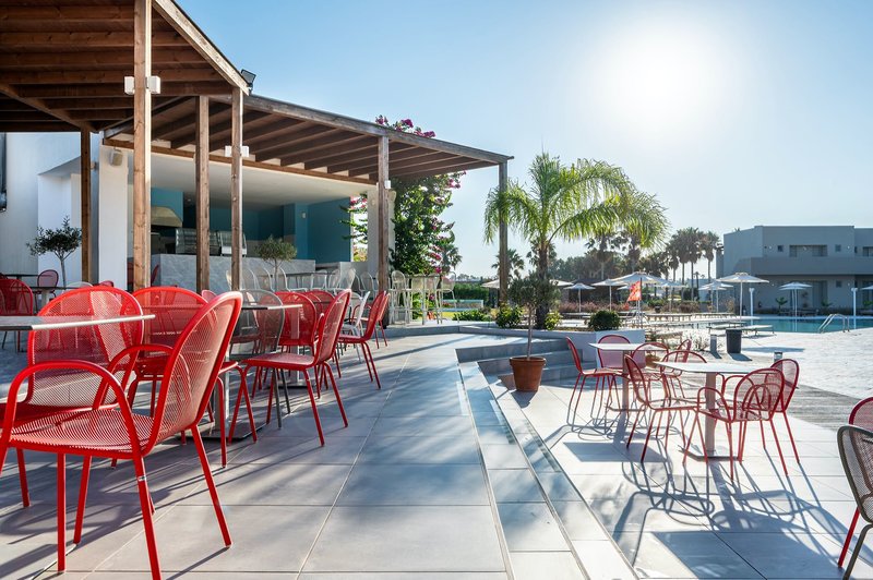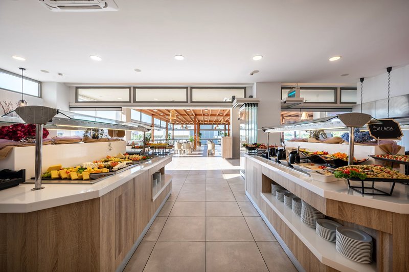 All Inclusive: Frühstück von 7:30-10:30 Uhr, Mittagessen von 12:30-14:30 Uhr und Abendessen von 18:30-21:30 in Buffetform mit kalten und warmen Gerichten mit Show-Cooking. Gelegentlich gibt es Themenabenden. Kalte und heiße Snacks und Eis in der Zeit von 10-17 Uhr sowie Kaffee, Tee, Kuchen und Gebäck von 17-18 Uhr. Lokale alkoholfreie Getränke (wie Kaffee, Tee, Soft Drinks, verschiedene alkoholfreie Cocktails und Säfte) und alkoholische Getränke (wie Fassbier, Hauswein, Ouzo, Brandy, Whiskey, Vodka, Gin, Rum und Tequila) an der Pool-/Snackbar von 10-18 Uhr und an der Hauptbar von 17-23 Uhr inklusive. Vegetarische Gerichte und Speisen für spezielle Ernährungsbedürfnisse sind verfügbar.