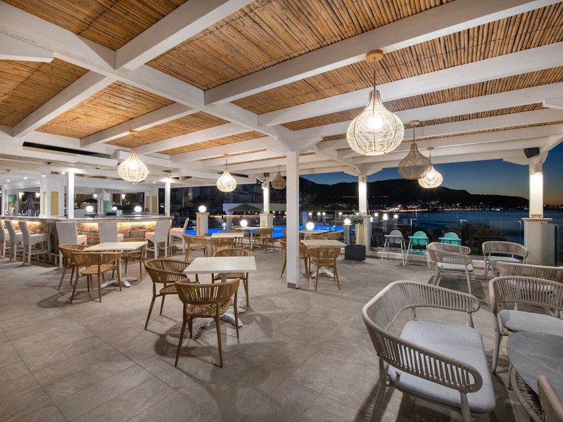 - Hlavná reštaurácia "Alexandros": Kuchyňa: grécka, medzinárodná, talianska, stredomorská, regionálna, detská výživa, diétna kuchyňa, bezlepkové jedlá, bezlaktózové jedlá, ľahké jedlá, vegetariánske jedlá, vegánske jedlá, bufet, menu, show cooking, rezervácia nie je potrebná, otvorené každý týždeň od 7:15 do 11:00, od 18:30 do 20:00 a od 20:15 do 21:30, dva časy posedenia pri večeri, klimatizácia, terasa, k dispozícii detská stolička, elegantný neformálny dress code
