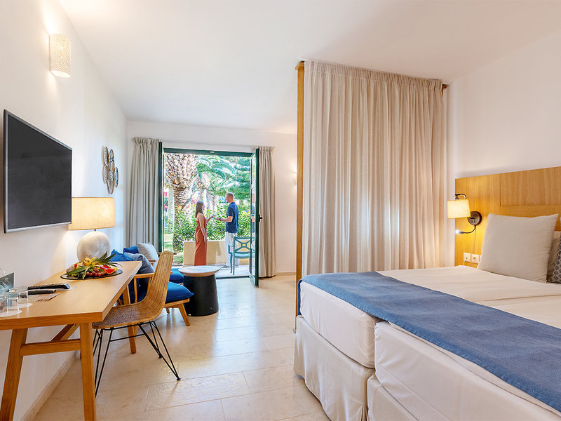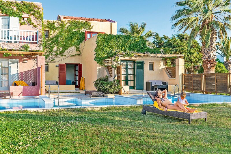 Príďte a cíťte sa dobre – dovolenkový komplex postavený v štýle krétskej dediny vás svojou priestrannou záhradou a priateľskými službami pozýva na oddych pod palmami. Odtiaľ máte fantastický výhľad na tyrkysovo modré Egejské more. Oddýchnite si alebo využite rozsiahly wellness, fitness a športový program.