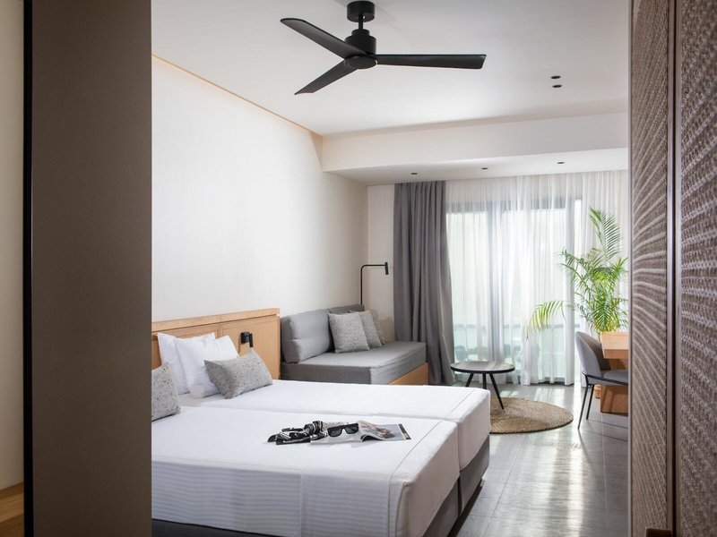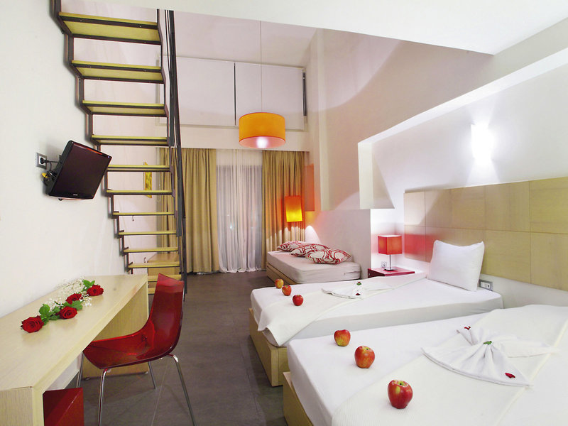 - Maisonette Appartment (APX1), Maisonette, im Hauptgebäude, Meerseite, seitlicher Meerblick, ca. 38 - 41 m², Gesamtanzahl der Räume in diesem Zimmertyp: 2, Aufteilung wie folgt: Maisonette, 2 Schlafzimmer, 3 Einzelbetten, 1 Doppelbett, Babybett: ohne Gebühr, Anfrage & Reservierung nicht notwendig, Klimaanlage: ohne Gebühr, individuell regelbar, zentral gesteuert, kalt, warm, Heizung: individuell regelbar, Fußboden: Fliesenboden, Safe: gegen Gebühr, Sofa, Schreibtisch, Kühlschrank, Kaffee-/Teezubereiter, Telefon, Internet: WLAN/WiFi: ohne Gebühr, Breitband-Internet/DSL: ohne Gebühr, Fernseher: Flatscreen, im Schlafzimmer, deutsches Programm, Sat-TV, Roomservice, Reinigungsservice: täglich, ohne Gebühr, Dusche, WC, Föhn, Balkon: mit Sitzgelegenheit
