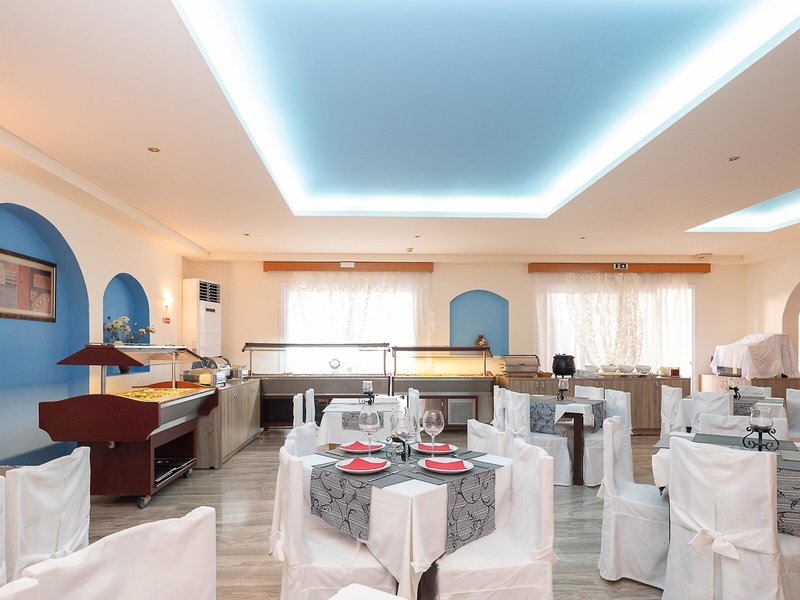 • Hlavná reštaurácia: Kuchyňa: grécka, medzinárodná, stredomorská, bufet, apríl - október, denne 7:30 - 9:30 a 19:00 - 21:00