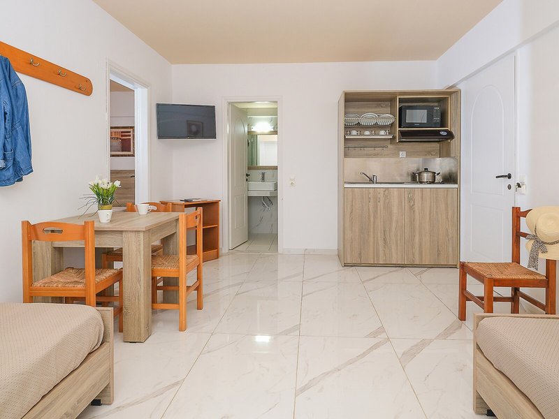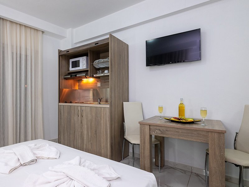 • Štúdio (STX1), Štúdio, Nefajčiarska izba, Pri bazéne, Pri ulici, Výhľad na bazén, Výhľad do záhrady, cca 20-35 m², posledná kompletná rekonštrukcia 2021, posledná čiastočná rekonštrukcia 2019, kombinovaná obývacia izba/spálňa, 1 jednolôžko (90x200cm), 1 manželská posteľ (150x200cm), Detská postieľka: na požiadanie, Klimatizácia: od 7 EUR, Trezor: za poplatok, Chladnička, Sporák, Mikrovlnná rúra, Kanvica, Jedálenský stôl, Internet: Wi-Fi: od 5 EUR, TV: Satelitná TV, Upratovacia služba, Balkón, Balkón alebo terasa, Terasa
