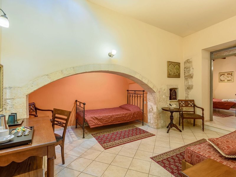 Lage & Umgebung Das charmante Hotel liegt im Herzen des venezianischen Hafens Chania und ist nicht weit (ca. 500 m) vom größten Marktplatz der Stadt Chania entfernt. In einem Umkreis von rund 150 m finden die Gäste Banken und Bäckereien mit traditionellen kretischen Delikatessen sowie viele der besten Restaurants, Tavernen und Nachtclubs der Stadt. Außerdem ist der zentrale Busbahnhof von Chania nur etwa 300 m entfernt. Bis zum Flughafen Souda sind es vom Hotel aus ungefähr 16 km.