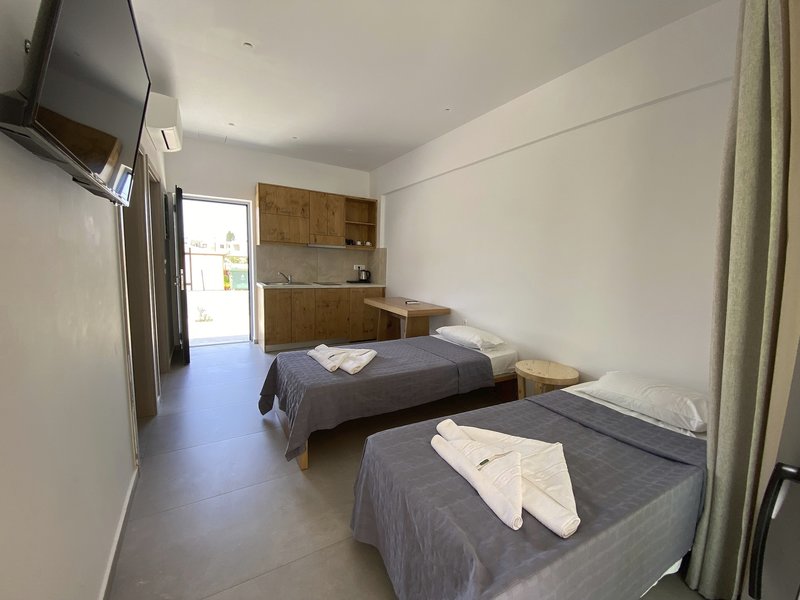 Die Zimmer mit Wohnraum sind ausgestattet mit King-Size-Bett, Doppelbett oder Twinbett, Extrabett (Schlafsofa), Babybett (kostenlos), Kitchenette, Microwelle, Wasserkocher (kostenlos), Balkon oder Terrasse, Internet (kostenlos), Safe (geg. Gebühr) und Sat-TV sowie individuell regulierbarer Klimaanlage. Badezimmer mit Dusche (Größe: 65 m²). Handtücher werden gewechselt.