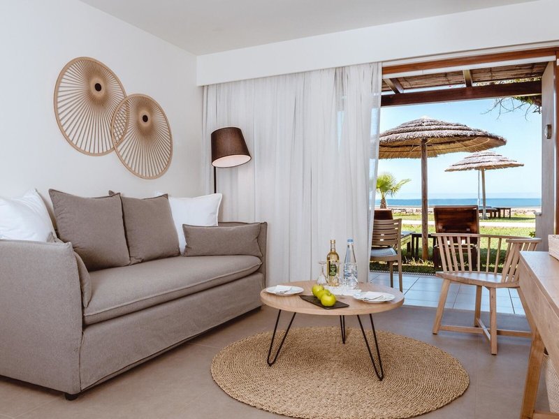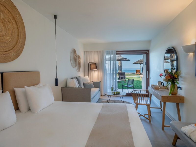 - Bungalow (BUX1), Bungalow, Nichtraucherzimmer, Meerblick, ca. 26 m², letzte Komplettrenovierung 2021, Gesamtanzahl der Räume in diesem Zimmertyp: 1, Aufteilung wie folgt: kombiniertes Wohn-/Schlafzimmer, 1 Doppelbett, 1 Schlafsofa, Klimaanlage: ohne Gebühr, individuell regelbar, kalt, warm, Fußboden: Fliesenboden, Safe: ohne Gebühr, Kühlschrank: ohne Gebühr, Nespressomaschine, Kaffee-/Teezubereiter, Telefon, Internet: WLAN/WiFi: ohne Gebühr, Fernseher: Flatscreen, Sat-TV, Roomservice: täglich, 07:30 Uhr - 22:30 Uhr, gegen Gebühr, Reinigungsservice: täglich, ohne Gebühr, Badewanne oder Dusche, Bademantel: ohne Gebühr, Slipper: ohne Gebühr, Föhn, Terrasse: mit Liegestühlen, mit Sitzgelegenheit