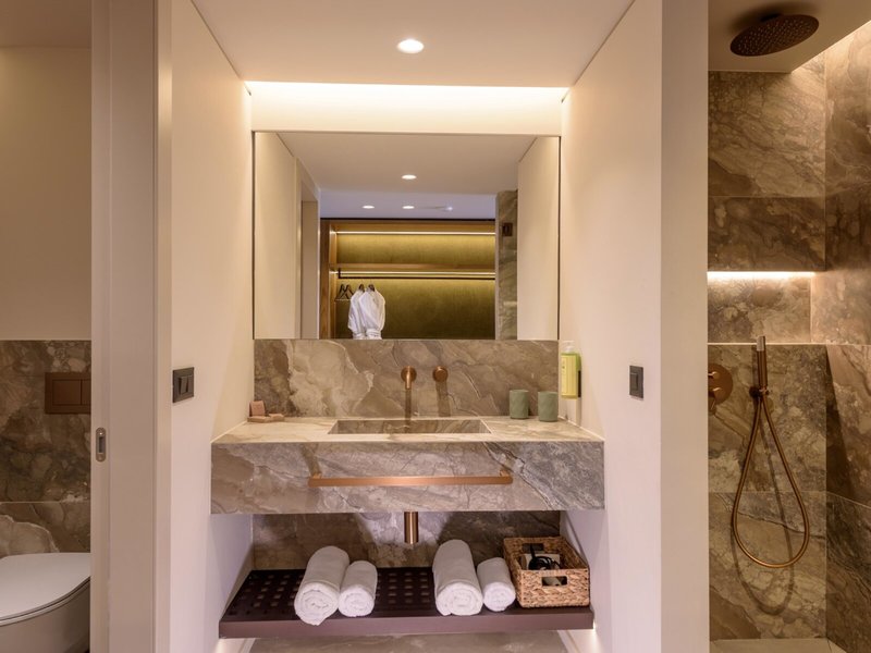 - Junior Suite so súkromným bazénom (JSX1), Dvojlôžková izba, Nefajčiarska izba, Záhradná strana, Výhľad do záhrady, cca 26 m², posledná kompletná rekonštrukcia 2021, Celkový počet izieb tohto typu: 1, Rozloženie: 1 spálňa, 1 manželská posteľ, 1 rozkladacia pohovka, Klimatizácia: bezplatne, individuálne ovládaná, studená, teplá, Podlaha: dlažba, parkety, Trezor: bezplatne, Chladnička: bezplatne, Kávovar Nespresso, Kávovar/čajník, Telefón, Internet: Wi-Fi: bezplatne, TV: plochá obrazovka, Satelitná TV, Izbová služba: denne 7:30 - 22:30, za poplatok, Sprcha, Župan: bezplatne, Papuče: bezplatne, Terasa: s ležadlami, s posedením