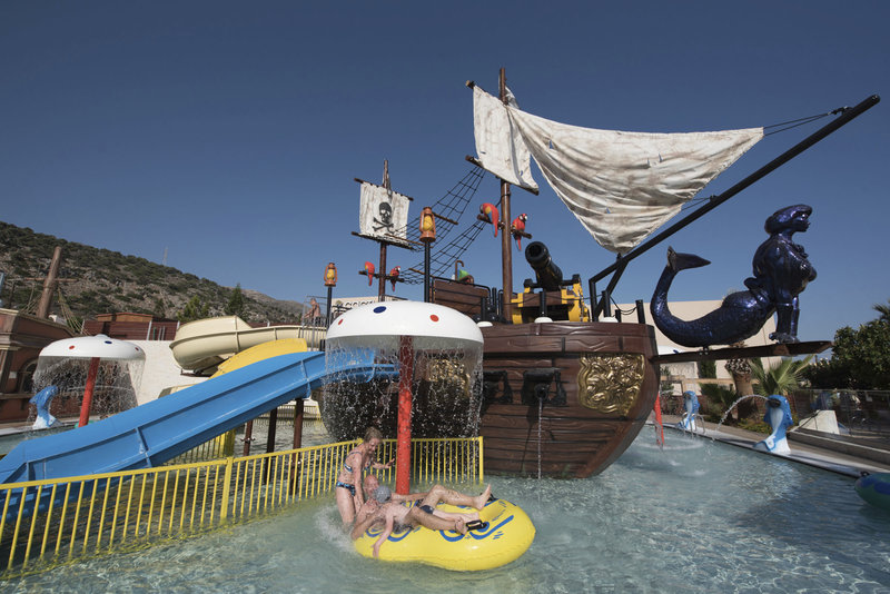 Plávanie: Vonkajšia časť tradične navrhnutého hotela s aquaparkom a toboganom zahŕňa tri sladkovodné bazény so samostatným detským bazénom. Lehátka a slnečníky sú k dispozícii zadarmo. Bar pri bazéne ponúka hosťom osviežujúce nápoje.