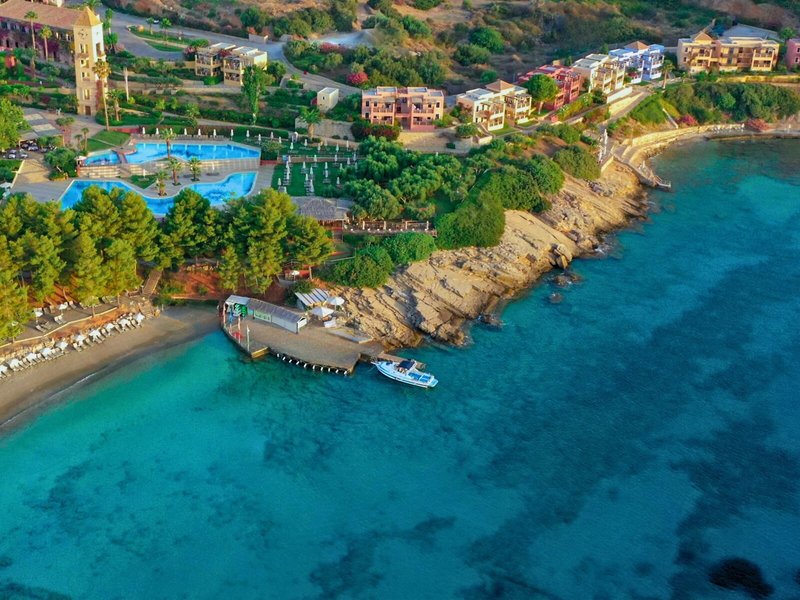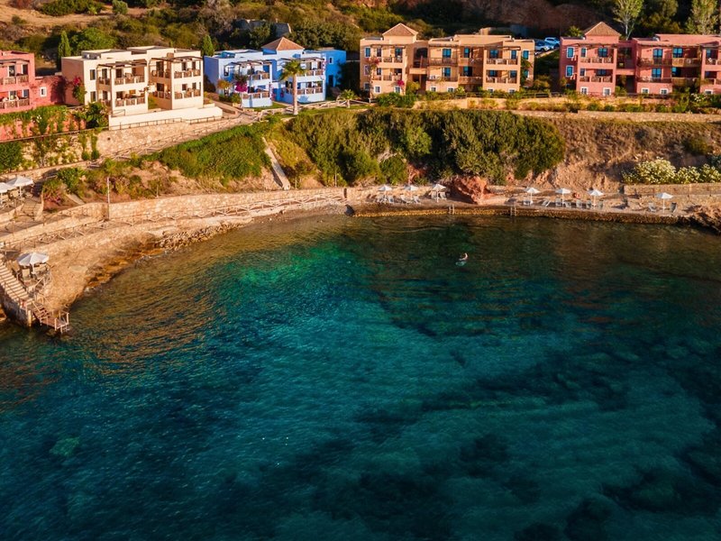 Poloha a okolie Na miernom svahu, priamo v mierne sa zvažujúcej pieskovo/kamienkovej zátoke s množstvom tienistých stromov. Do Agios Nikolaos cca 3,5 km a Elounda cca 5 km. Pravidelné autobusové spojenie.