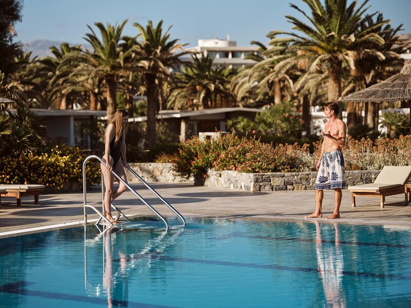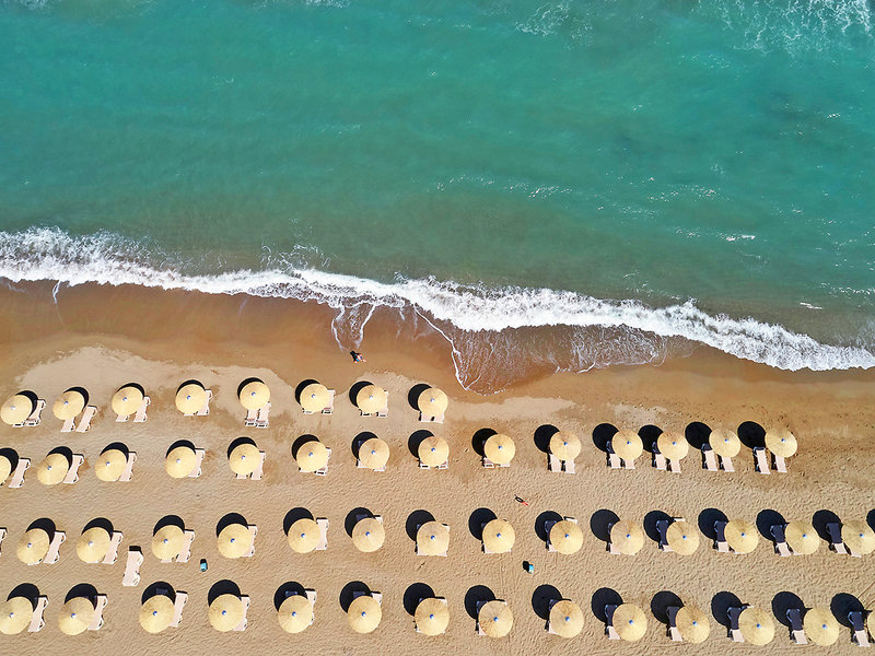 Poloha: Priamo na rozsiahlej piesočnatej pláži Amoudara a len asi 5 km od pulzujúceho centra mesta Heraklion. Čaká tam na vás historické staré mesto, rušné nákupné ulice a množstvo možností zábavy. V bezprostrednej blízkosti hotela vás pozývajú na prechádzku a zábavu útulné bary, tradičné taverny a rôzne obchody vrátane obchodov so suvenírmi. Autobusová zastávka je vzdialená len 50 metrov
