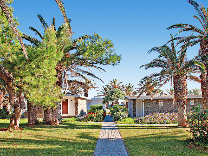 Premium-Bungalow (BUP, ca. 25 qm), Klimaanlage, Minikühlschrank, Telefon, TV, WLAN, Mietsafe. Dusche, WC, Föhn. Terrasse mit Gartenblick. Max. 4E, wahlw. in Strandnähe (BUF; unter HER549). Max. 3E