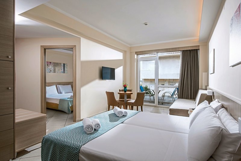 - Familien, 1 separates Schlafzimmer, kombinierter Wohn-/Schlafraum, 2 Einzelbetten, 1 Doppelbett, Sofabett, 1 Bad, Badewanne, WC, Haartrockner, Fliesen, Klimaanlage, Safe, 2 TVs (Sat-TV, deutschsprachiges Programm, Flachbildschirm), Kaffee/Tee, Kühlschrank, Balkon oder Terrasse (möbliert)