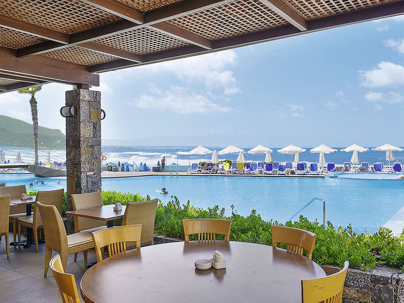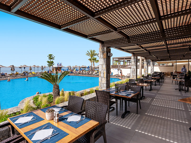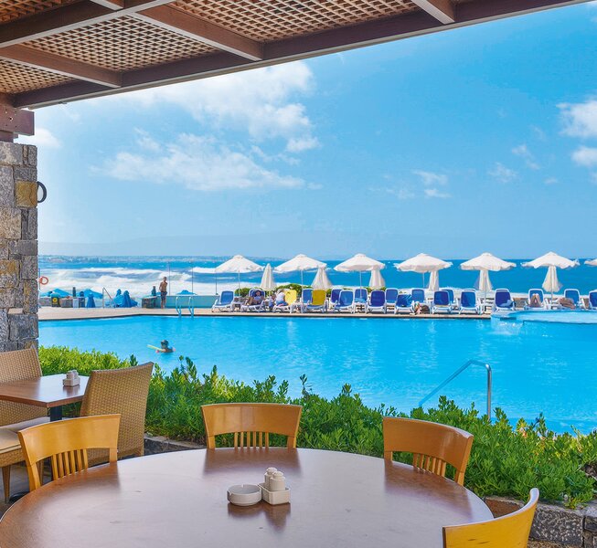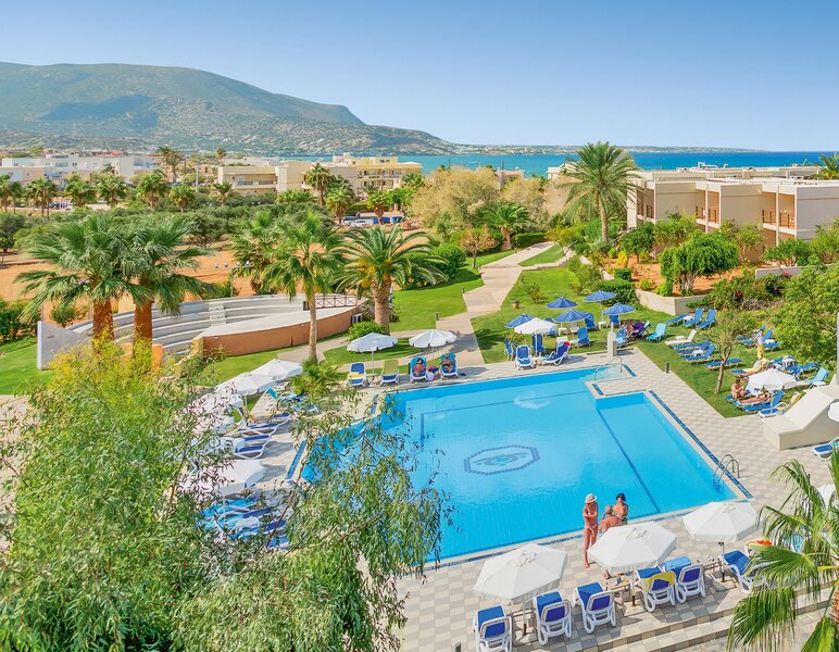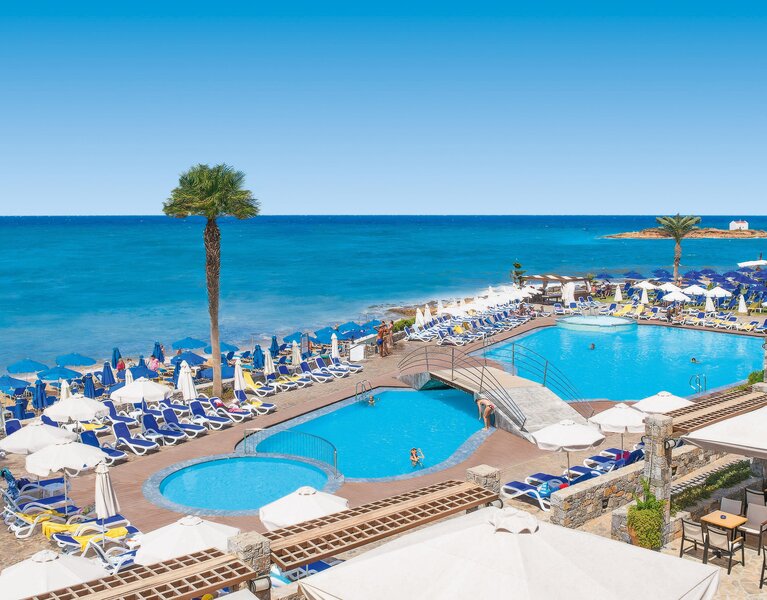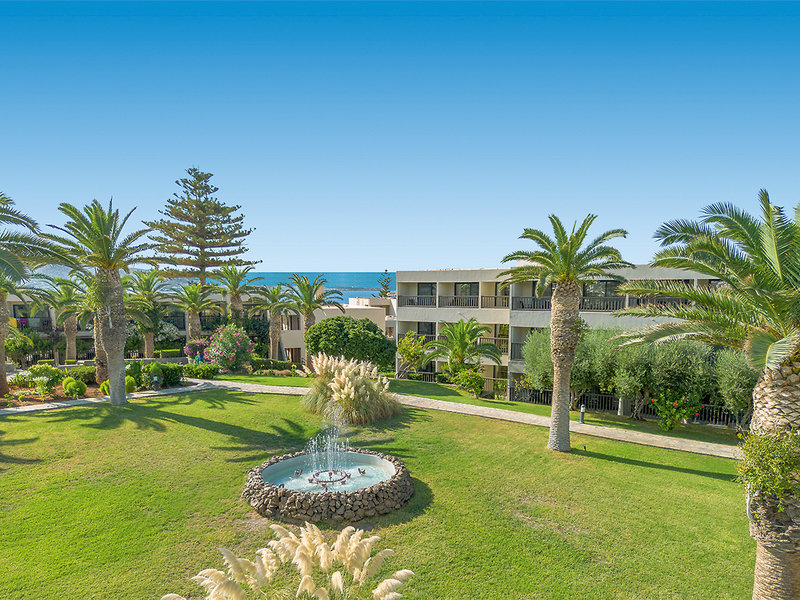 Ausstattung: Die beliebte Ferienanlage mit Haupthaus und mehreren 2- bis 3-geschossigen Wohngebäuden, umgeben von einem weitläufigen Garten, wurde im Winter 24/25 komplett renoviert Oberhalb des Strandes befindet sich eine großzügig angelegte Swimmingpoollandschaft mit Sonnenterrassen, Liegewiese, Pool-/Snackbar und herrlichem Meerblick. Ein weiterer Pool mit Sonnenterrassen und Liegewiese, Taverne, Pool-/Snackbar inmitten der schönen Gartenlandschaft. Liegen und Sonnenschirme am Strand und in der Anlage inklusive (Badetücher geg. Kaution, Wechsel geg. Gebühr). Empfangsbereich, Rezeption, WLAN inklusive, Minimarkt. Direkt oberhalb des Meeres großzügiges Restaurant und Taverne auf 2 Ebenen mit Außenterrassen und traumhaftem Meerblick. Landeskategorie: 4 Sterne, 299 Zimmer, 7 Gebäude.